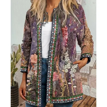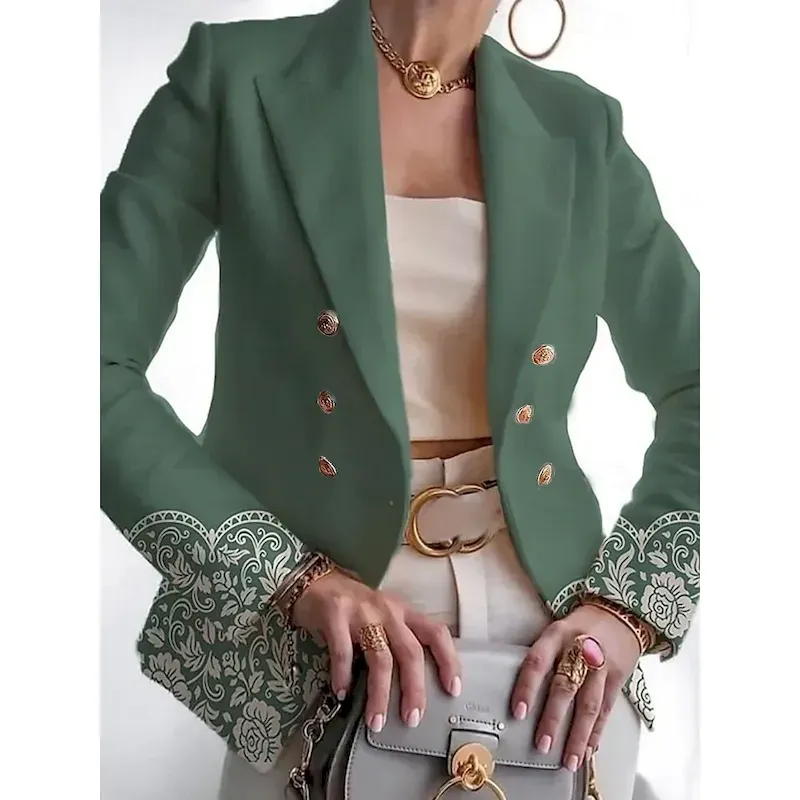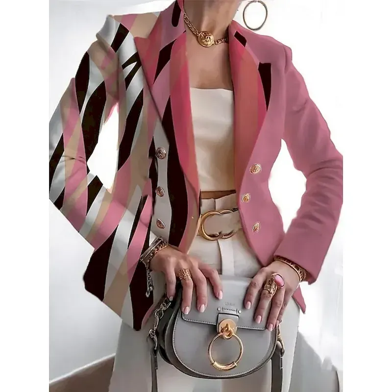 Women’s Blazer Comfortable Breathable Print Casual Geometric Office Street Casual Daily Wear Open Front Regular Notch Lapel Regular Fit Long Sleeve Outerwear White Pink Blue Spring Fall