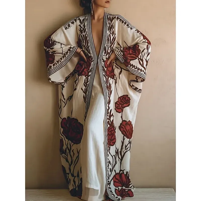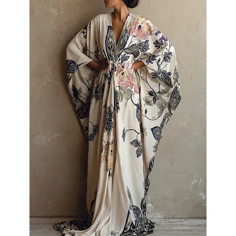 Women’s Long Dress Maxi Dress Boho Dress Vacation Casual Dress Swing Dress Fashion Modern Daily Holiday Beach Regular Fit Floral Long Sleeve V Neck Wine Red Navy Blue Apricot Summer Spring