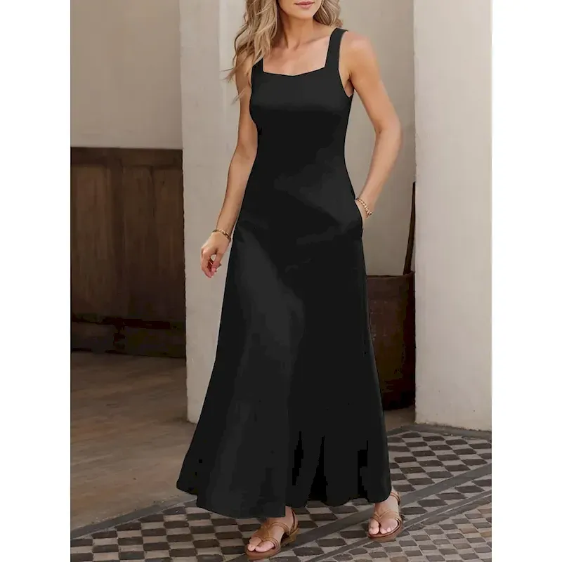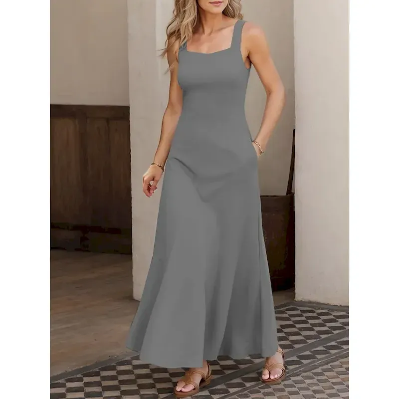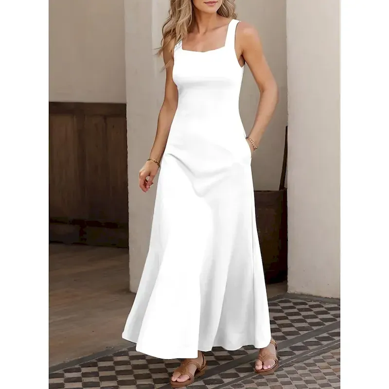 Women’s Maxi Dress A Line Dress Summer Dress Off The Shoulder Dress Vacation Casual Party Date Regular Fit Solid Color Graphic Sleeveless Square Neck Black White Pink Gray Summer Spring