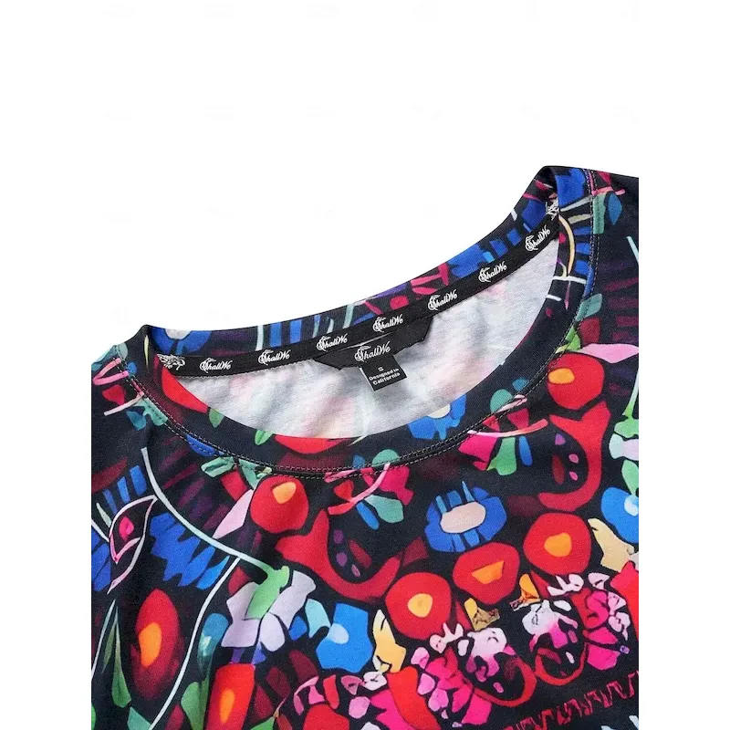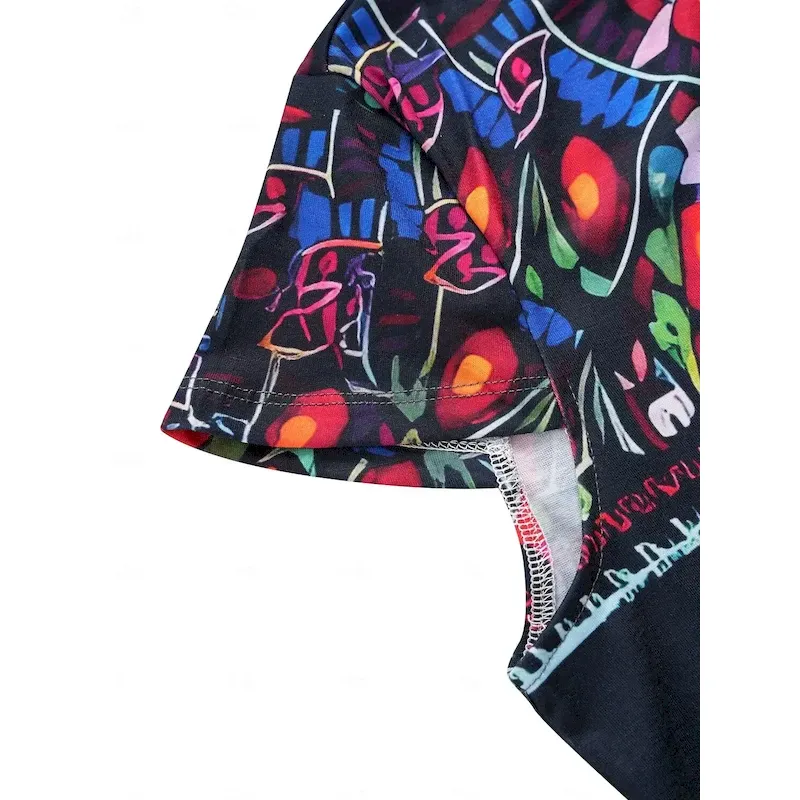 [Fabric]: Crafted from high-quality polyester, this maxi dress offers a soft and comfortable feel suitable for warm weather. The fabric’s micro-elasticity ensures a perfect fit and ease of movement.[Silhouette]: Designed with a regular fit, the dress boasts a relaxed and flowing silhouette, ideal for casual wear. The maxi length adds an element of elegance to its overall appearance.[Design Highlights]: Featuring a split, print, and curved hem, this dress is adorned with intricate floral patterns. The vibrant hues of red, orange, and gold stand out against a deep black background, lending it an exotic and sophisticated flair. The crew neckline and short sleeves add simplicity and elegance, while handy pockets enhance functionality.[Occasions]: Perfect for vacations, this bohemian-style dress is ideal for casual outings or summer adventures. Pair it with sandals or casual footwear for a chic and comfortable summer look.[Size Range]: Available in a variety of sizes from S to XXL, this versatile dress accommodates different body types, ensuring a comfortable fit for everyone.OK