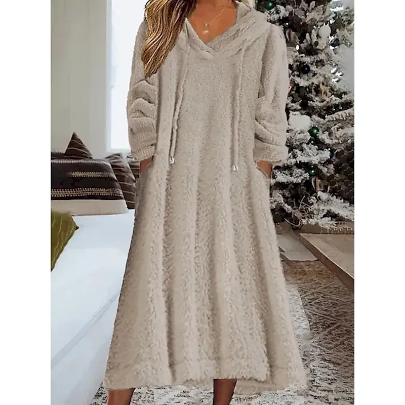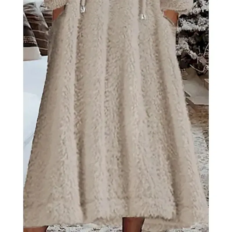 Women’s Midi Dress Casual Dress Winter Dress Fashion Modern Daily Weekend Regular Fit Plain Long Sleeve Hooded Khaki Winter Autumn