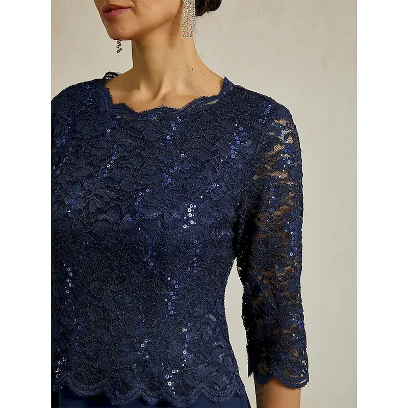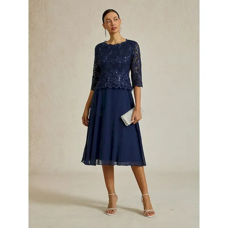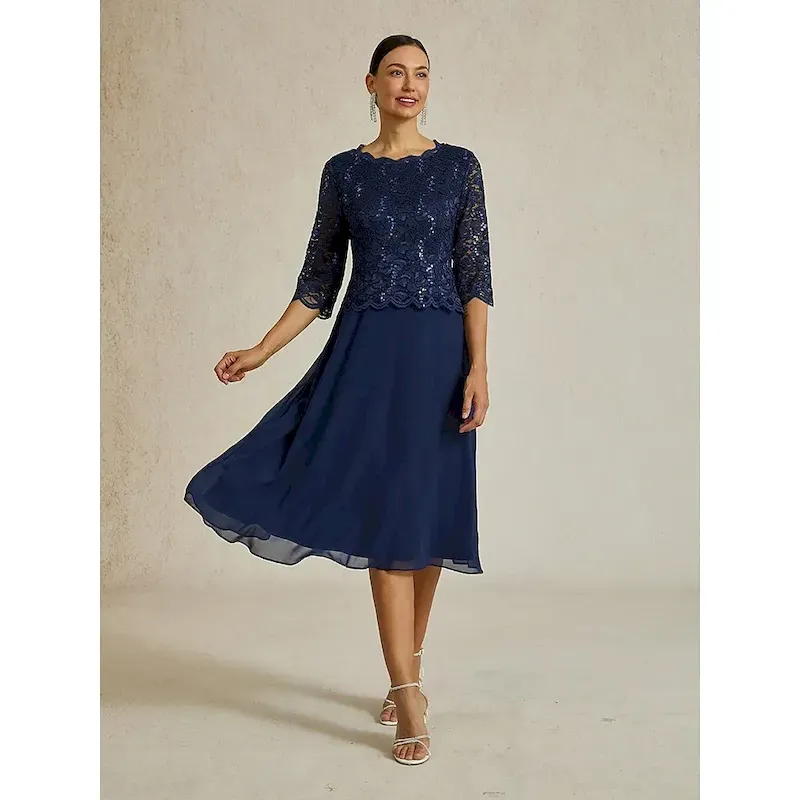 Women’s Midi Dress Chiffon Dress Elegant Party Birthday Regular Fit Solid Color 3/4 Length Sleeve Crew Neck Navy Blue Summer Spring Fall