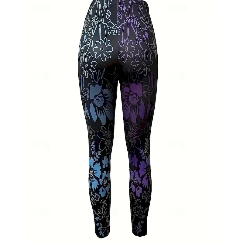 Women’s Pants Trousers Leggings Cozy Leggings Streetwear Casual Full Length High Waist Floral Elastic Waist Print Breathability Comfortable Stretchy Vacation Street Daily Wear Blue Spring Fall