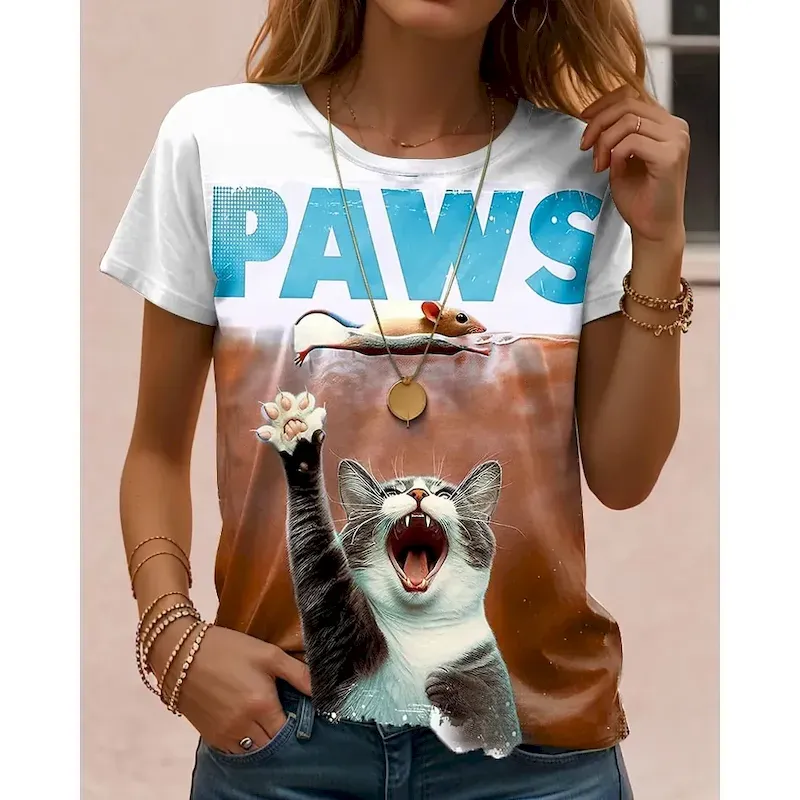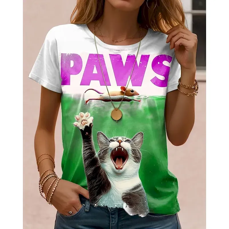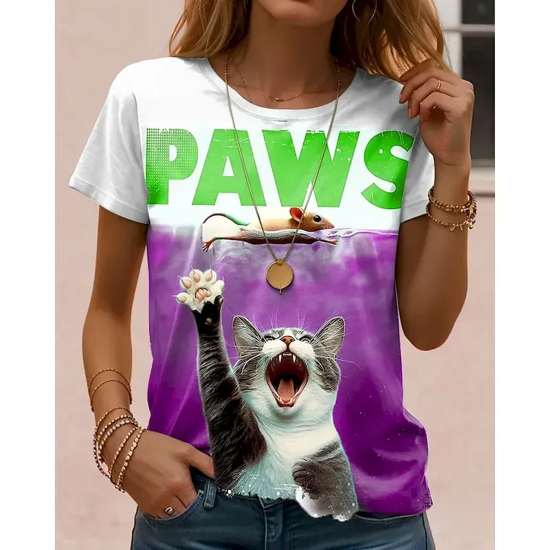 Women’s T Shirt Graphic Cat Letter Vintage Stylish Classic Short Sleeve Crew Neck Regular Tops Daily Weekend Print Blue Purple Green Khaki Summer Spring