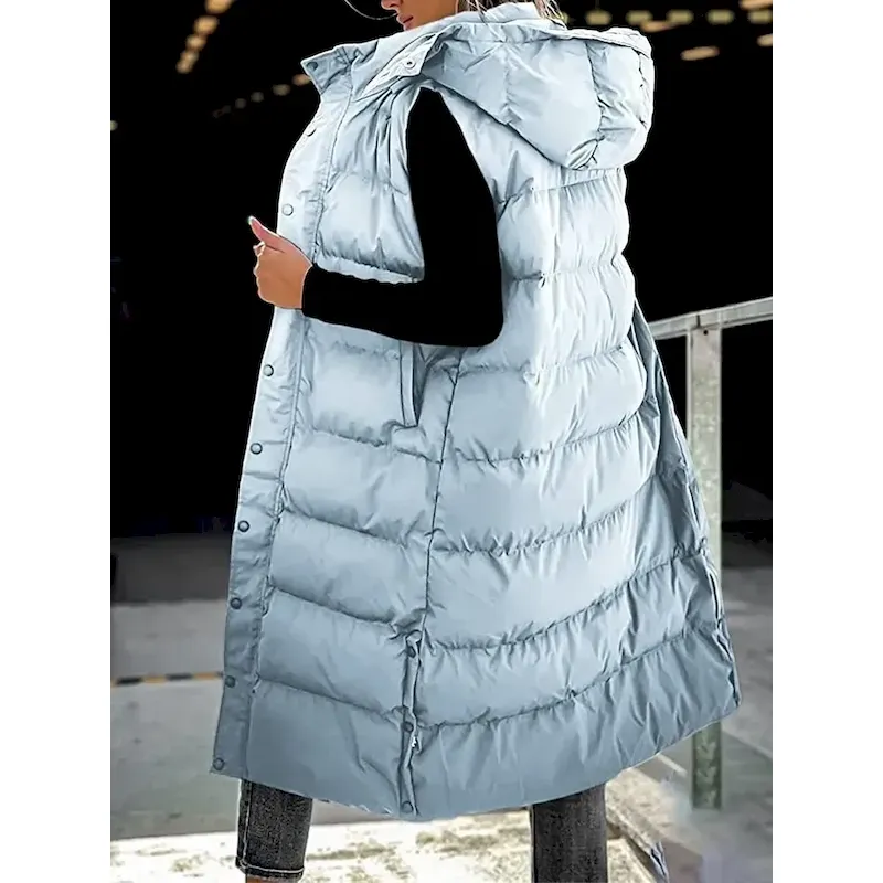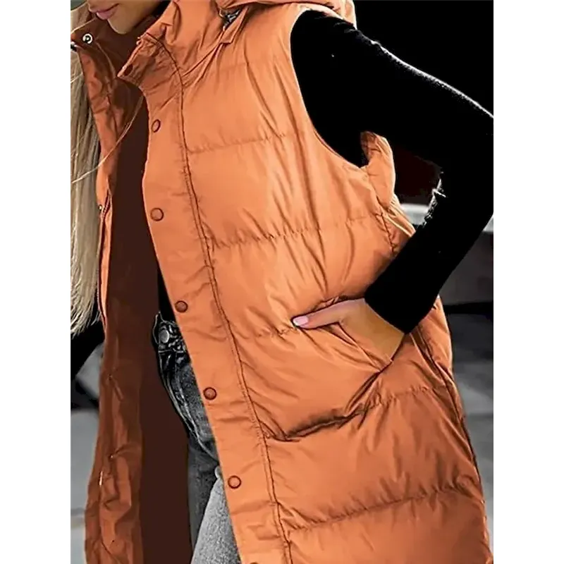 Women’s Vest Warm Breathable Buttons Pocket Fashion Casual Street Style Plain Outdoor Vacation Street Daily Wear Single Breasted Long Hoodie Regular Fit Sleeveless Outerwear Black White Sky Blue Fall